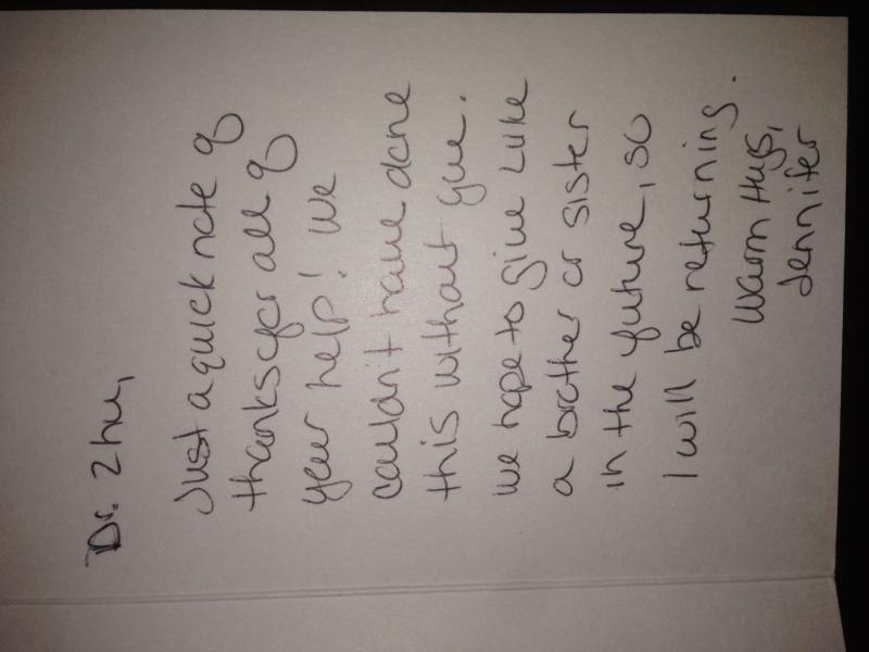 Dr. Zhu- I just wanted to send you an email to say hello and show you our beautiful son. He's 6 months old now. I truly believe that your treatment for infertility and stress helped! My husband and I can't thank you enough. He's an amazing little boy. I will recommend you to everyone I meet! Hope you have a great day!